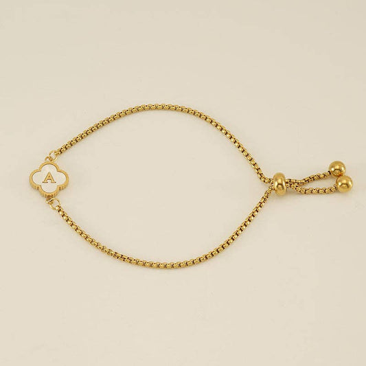 Initial Letter Four Leaf Clover Bracelet in Stainless Steel